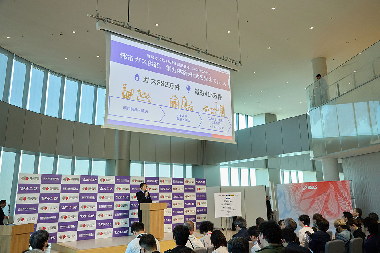 東京2025世界陸上100 Days To Go!において、東京2025世界陸上競技選手権大会の電気公共サービス・ガス・ガス公共サービスカテゴリーの公式イベントサポーターである東京ガスは、CO2の排出量削減への貢献においても 取り組むことを発表した。いつまでもスポーツを楽しめる、競い合える環境を守るためにも東京ガスはカーボンクレジットを活用していく。100日前の節目にふさわしい、熱気あふれるイベントとなった。